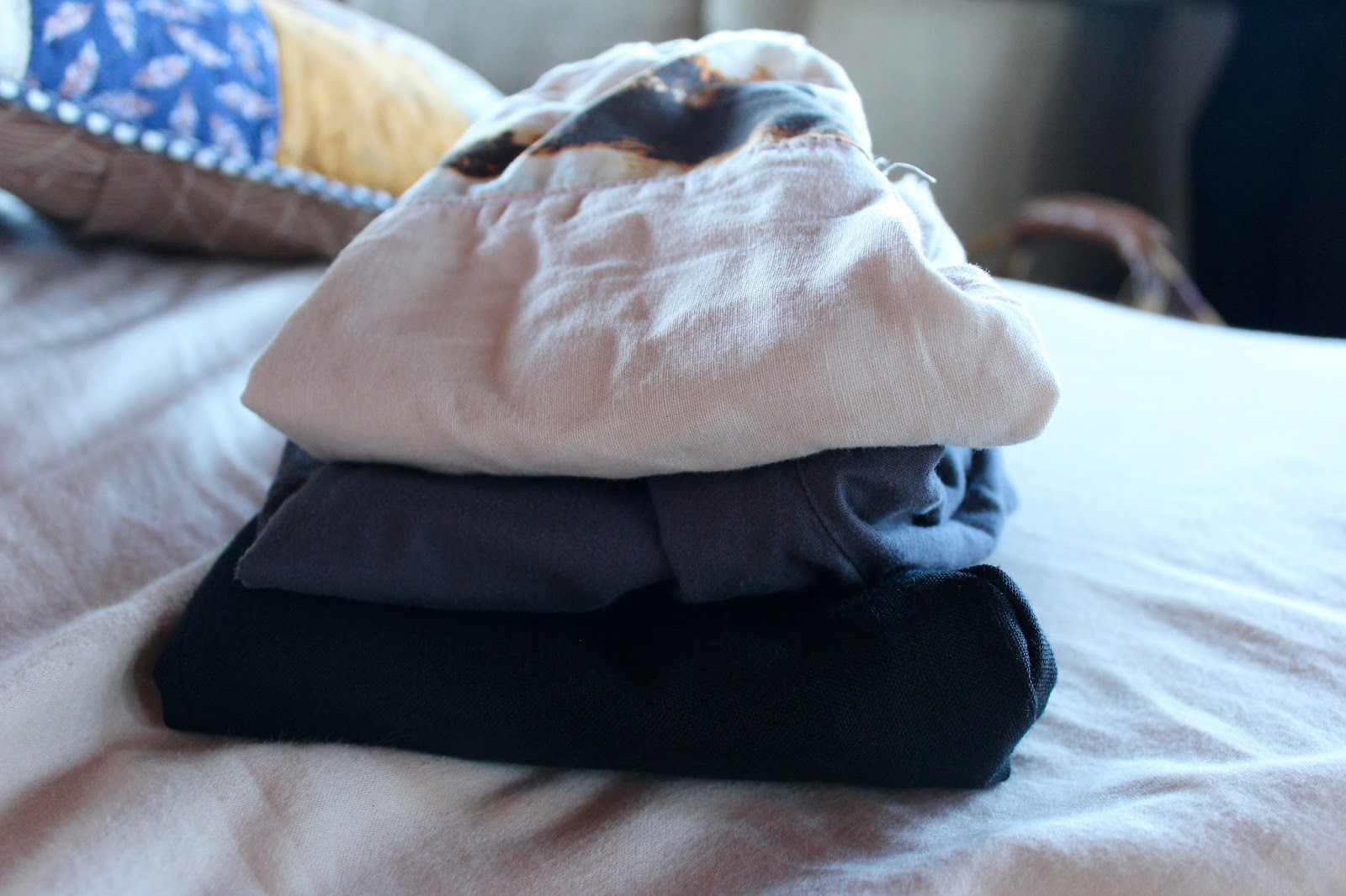 My machine and I are starting to come to an understanding. I realize that when I expect my machine to sew with thick bulky seams, it doesn't like it. It only wants to piece two layers. For this pair of black pants, the hems were done by hand. I think for this project I really preferred it. There is something a bit romantic about hand stitching a garment. My imagination had so much food for thought as I sat there thinking about all of the women before me who once hand sewed garments for their loved ones. It's amazing - how a craft can tie you to generations before. The connection and history that comes with it.